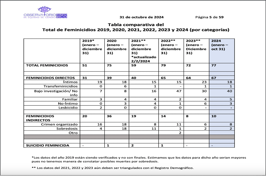 Observatorio de Equidad de Género de Puerto Rico. (2024). Estadísticas de violencia de género.